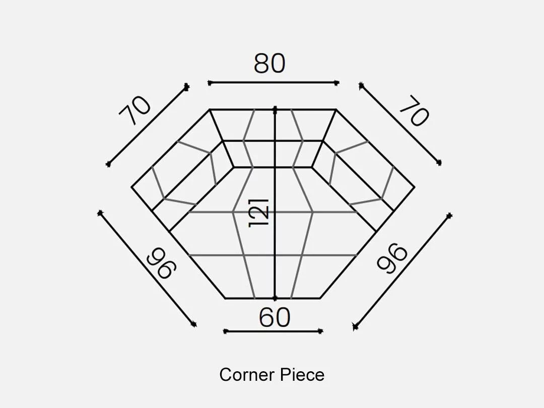 | Modular Pieces | 1-Seater Armless Big, 1-Seater Armless Small, 1-Seater L/R Arm Big, 1-Seater L/R Arm Small, Corner Piece, Rest Corner Piece, Middle Table |
